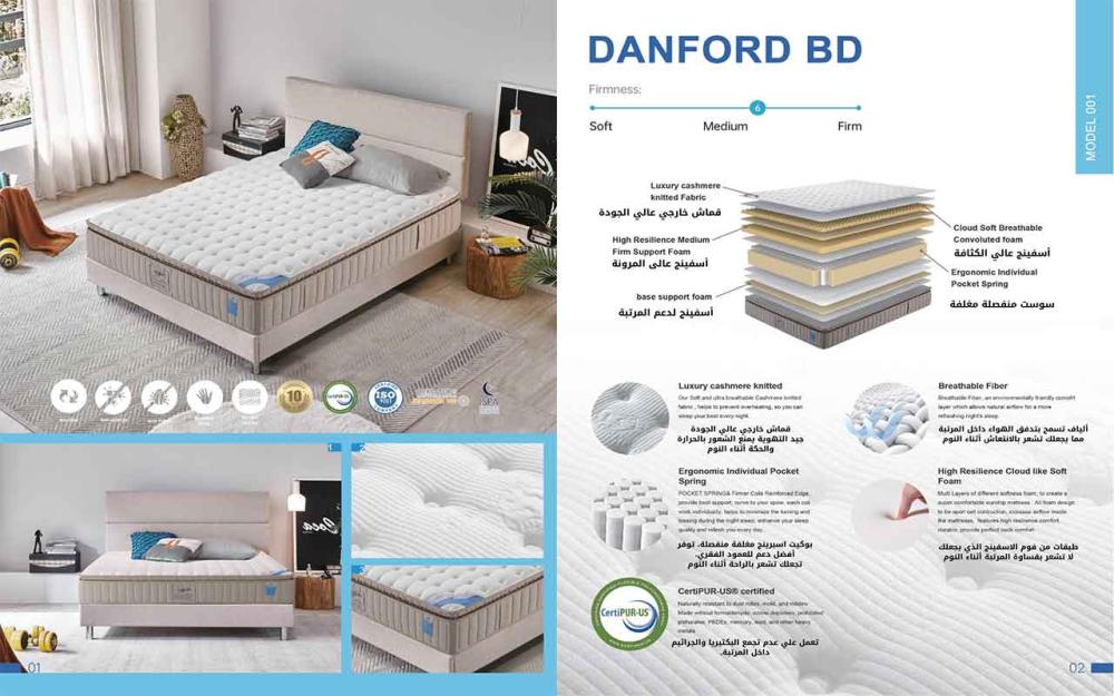 4 طبقات من الاسفنج المرن عالي الجودة لتحقيق الراحة والمرونة للجسد أثناء النوم.